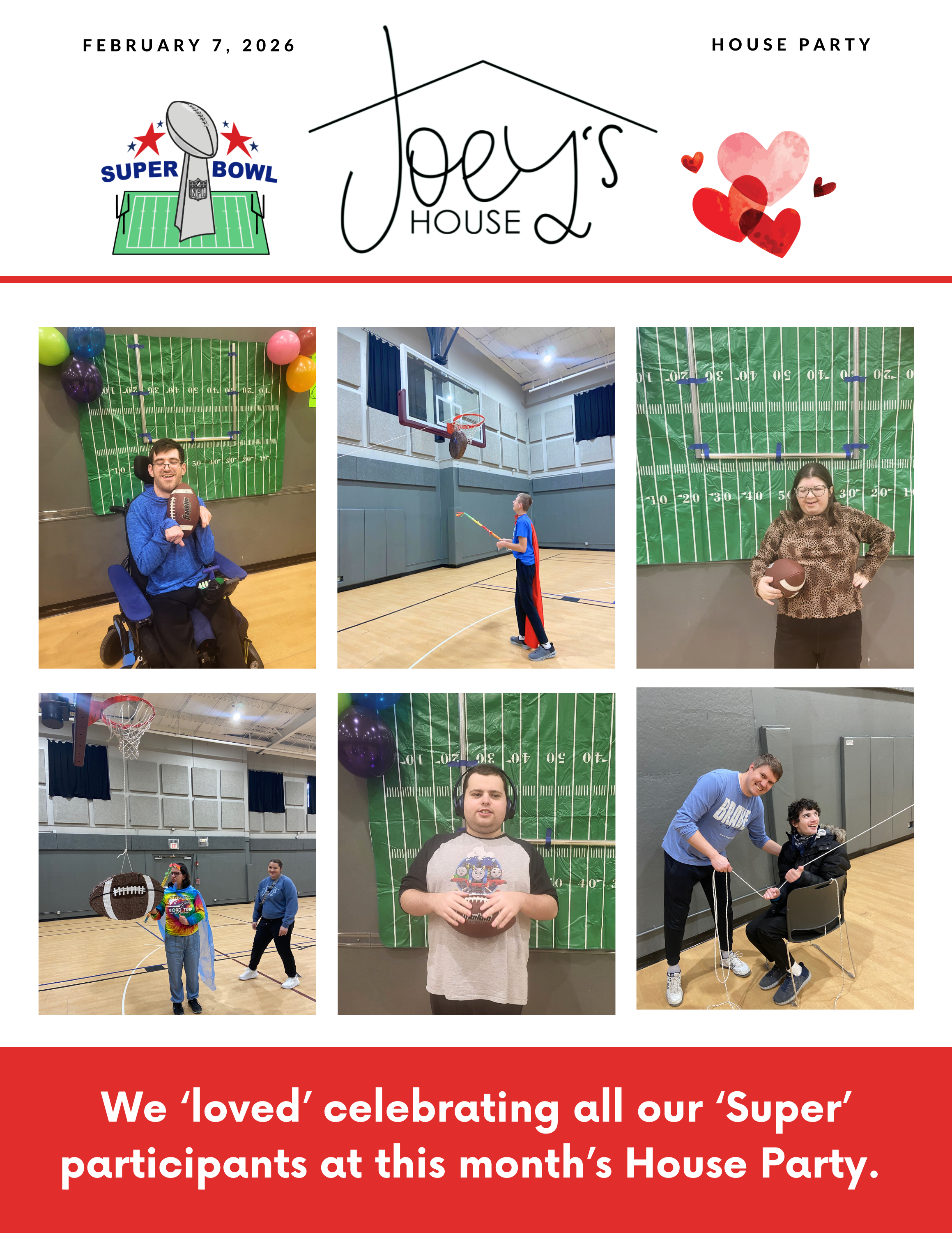 Our February “House Party” was packed with love, friendship, and Super Bowl kick-off energy! Joey’s House participants practiced their football skills, planted “aloe” plants for people they love “vera” much, and dove into hands-on, multi-sensory science activities. The full day was topped off by bringing back a Joey’s House classic: a piñata!